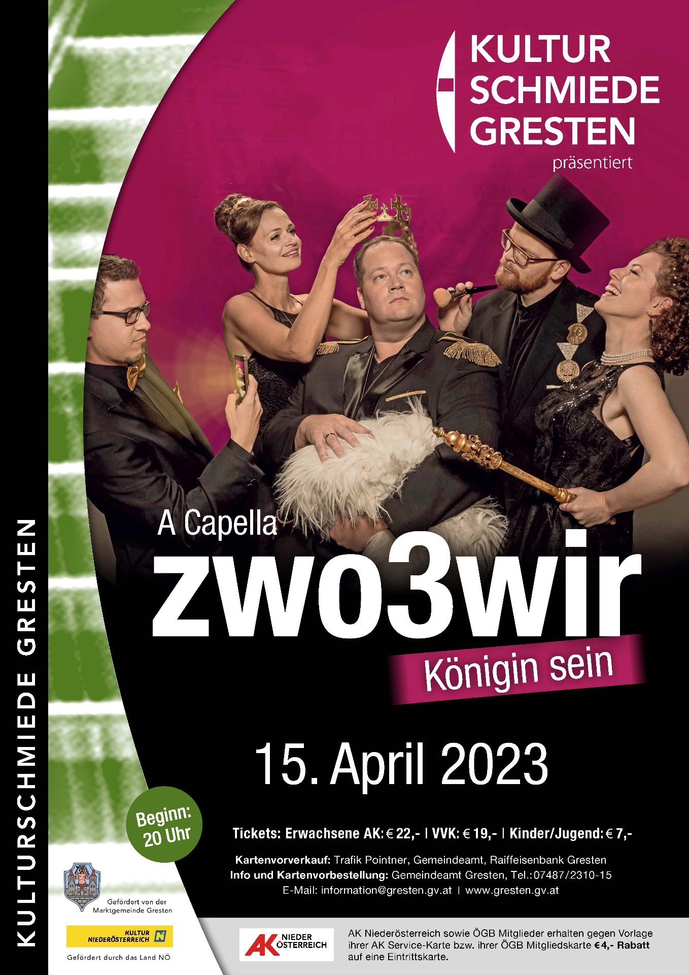 Kartenvorverkauf: Trafik Pointner, Gemeindeamt, Raiffeisenbank Gresten