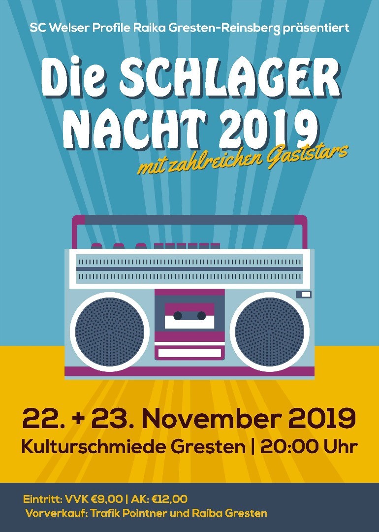 Teilnehmer: Sangeswillige Grestnerinnen und Grestner, sowie die verschiedenen "Vereinschöre"der SC Welser Profile Raika Gresten-Reinsberg präsentiert die Schlagernacht 2019 mit zahlreichen Gaststars