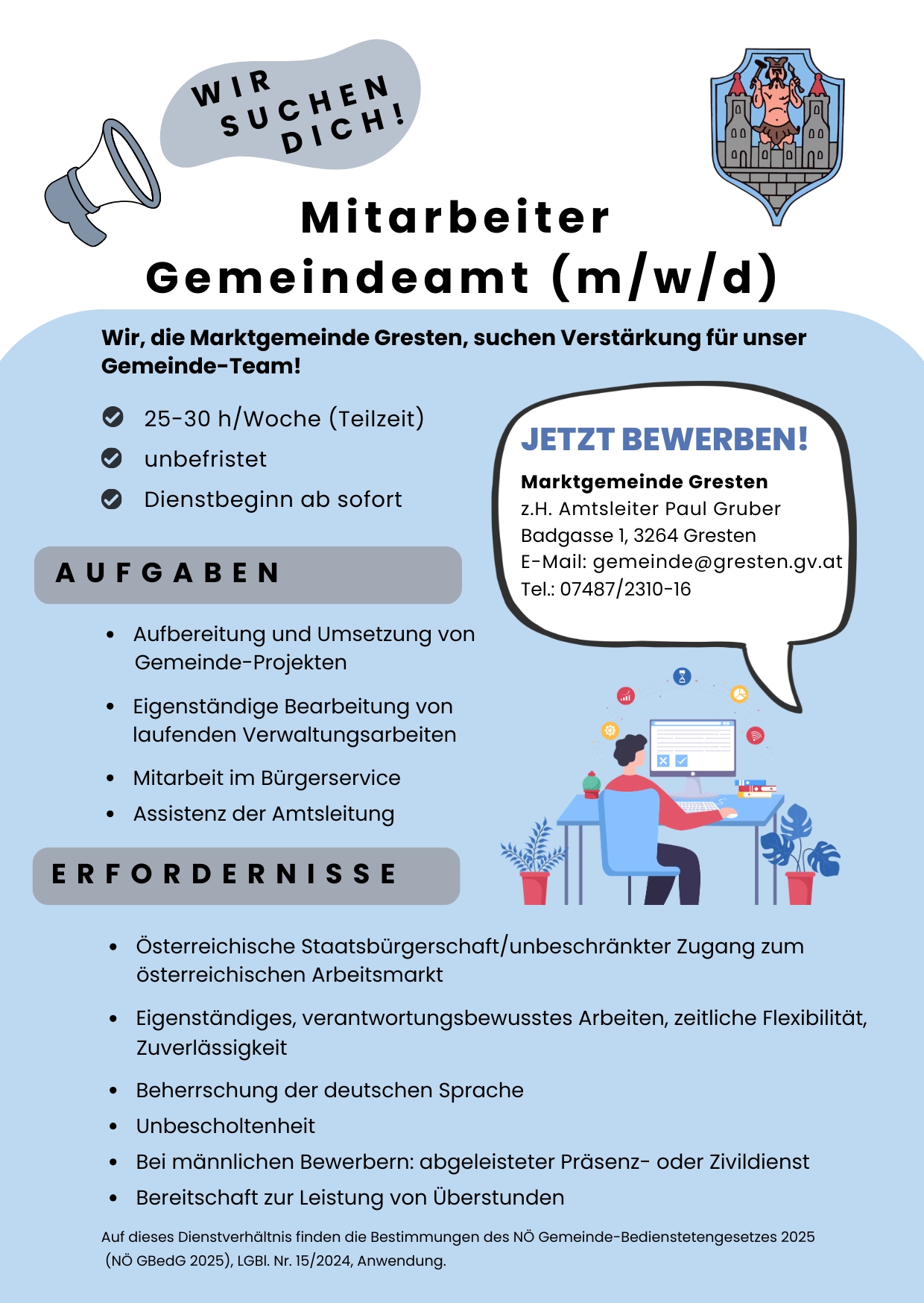 Stellungsausschreibung Gemeindeamt