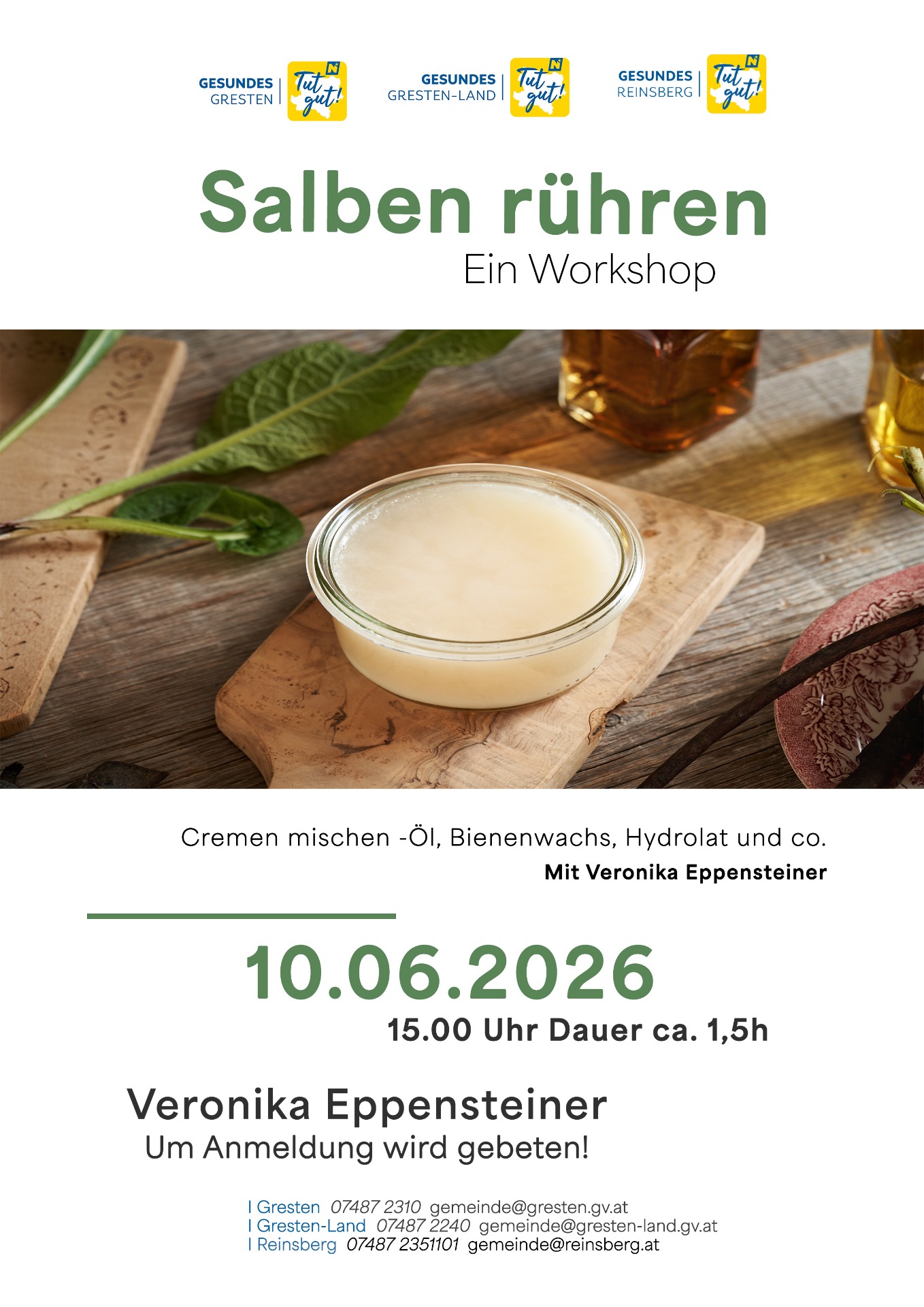 Die Gesunden Gemeinden Gresten und Gresten-Land bieten jedes Jahr gemeinsam einige Veranstaltungen, sei es Workshops im Turnsaal, Vorträge, Kindererlebnistage oder ähnliches. Das genaue Programm finden Sie am jeweiligen Jahresplakat bzw. auf der Startseite der Gemeindehomepage. Wir würden uns freuen, Sie bei den Gesunde Gemeinde-Veranstaltungen begrüßen zu dürfen!