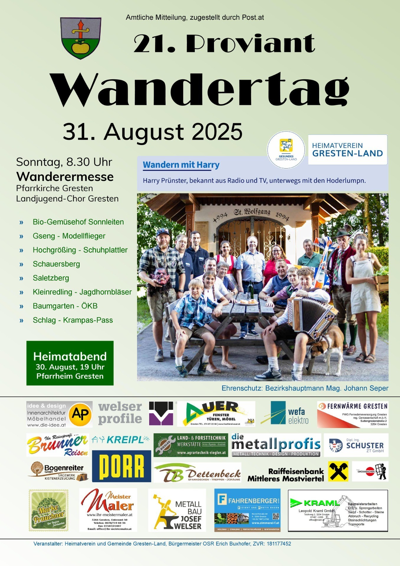 08:30 Uhr Wanderermesse in der Pfarrkirche Gresten mit dem Landjugend-Chor Gresten